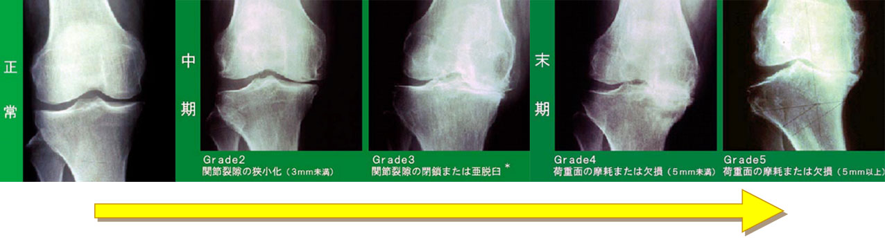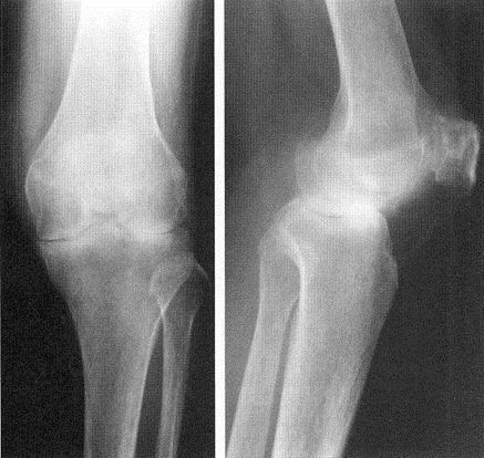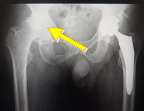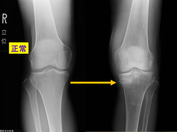 ⑥右ひざが痛くて歩きづらい→変形性股関節症(下図)
