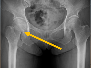 ⑤転んだあと、右ひざが痛くて歩いて来院→大腿骨頚部骨折(下図)